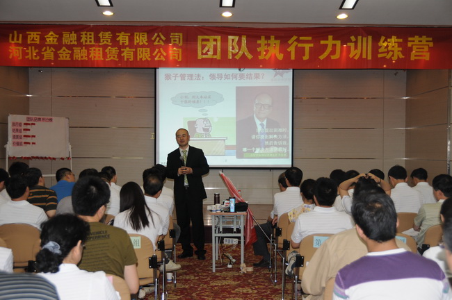 2012年5月28日,公司與山西金融租賃有限公司聯(lián)合開(kāi)展了“團(tuán)隊(duì)執(zhí)行力訓(xùn)練營(yíng)”培訓(xùn)。整個(gè)培訓(xùn)過(guò)程分為二個(gè)部分:一、王淑忠老師主講的《團(tuán)隊(duì)執(zhí)行力訓(xùn)練營(yíng)》內(nèi)訓(xùn),二、《團(tuán)隊(duì)執(zhí)行力訓(xùn)練營(yíng)》戶外拓展訓(xùn)練。
